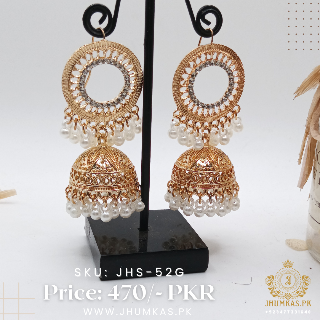 Be the first to review “Golden Jhumka Earrings With Round Hoop”