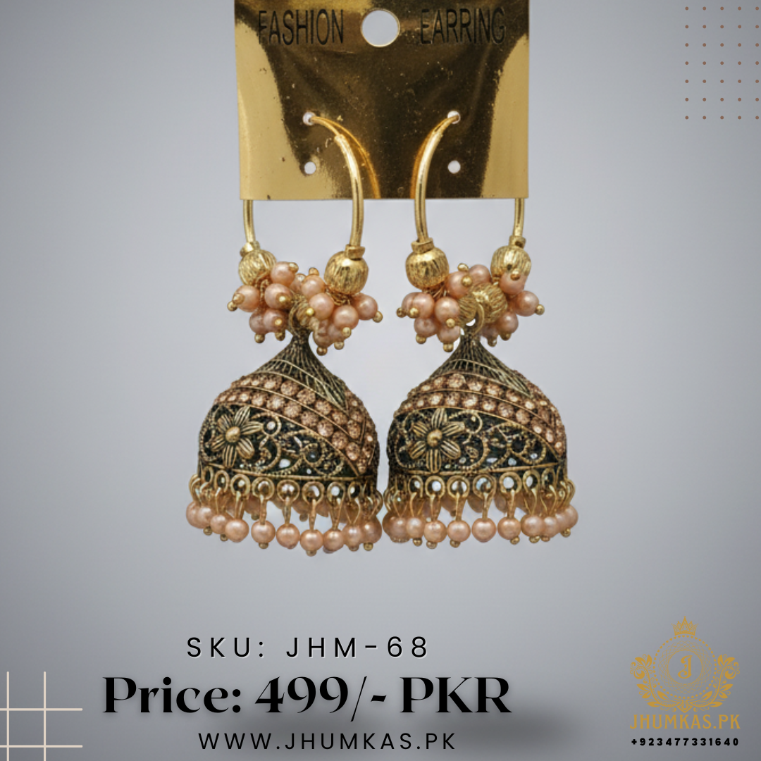 Crafted with lightweight material and fine detailing, they’re both comfortable to wear and eye-catching. Whether you’re styling a kurti, saree, or lehenga, these jhumkas will elevate your ethnic outfit with a pop of artistic flair.